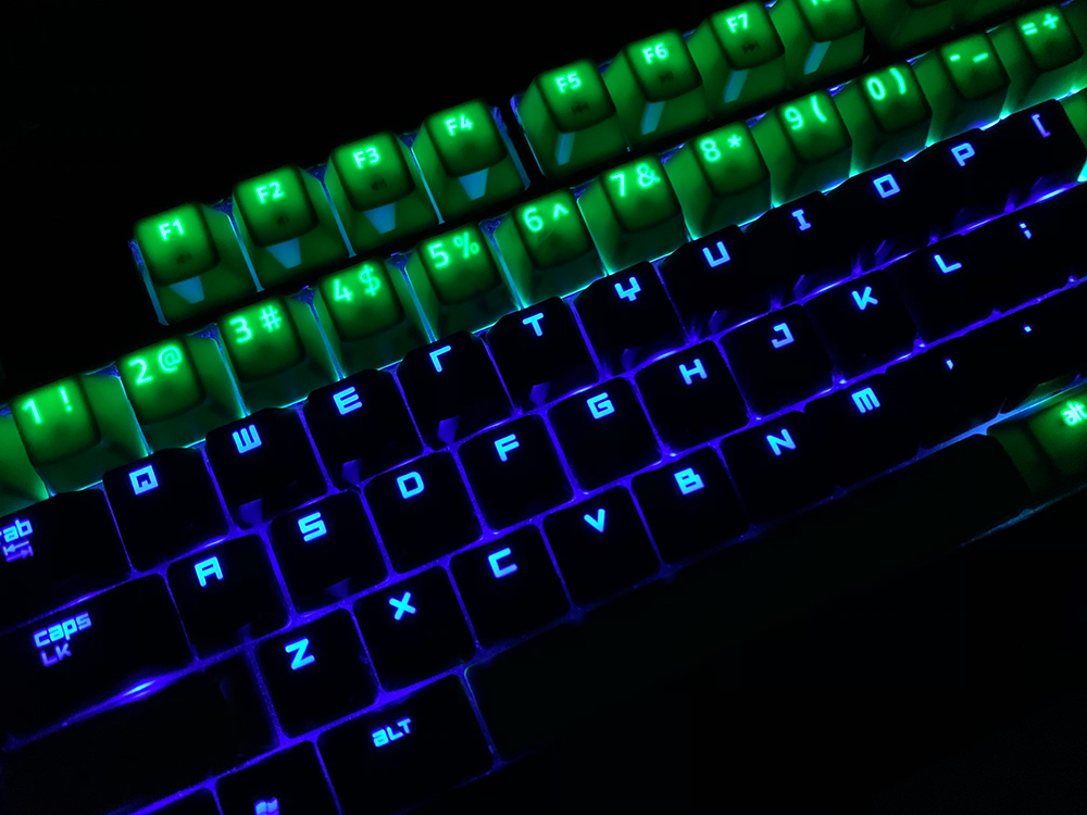 あとは、T、D、R、K、G、Mの各キーの発光部分を「焼き込み」ツールで明るくし、その他のキーを「覆い焼き」ツールで暗くしています。一応今回の表紙のイースターエッグ的な要素になります。