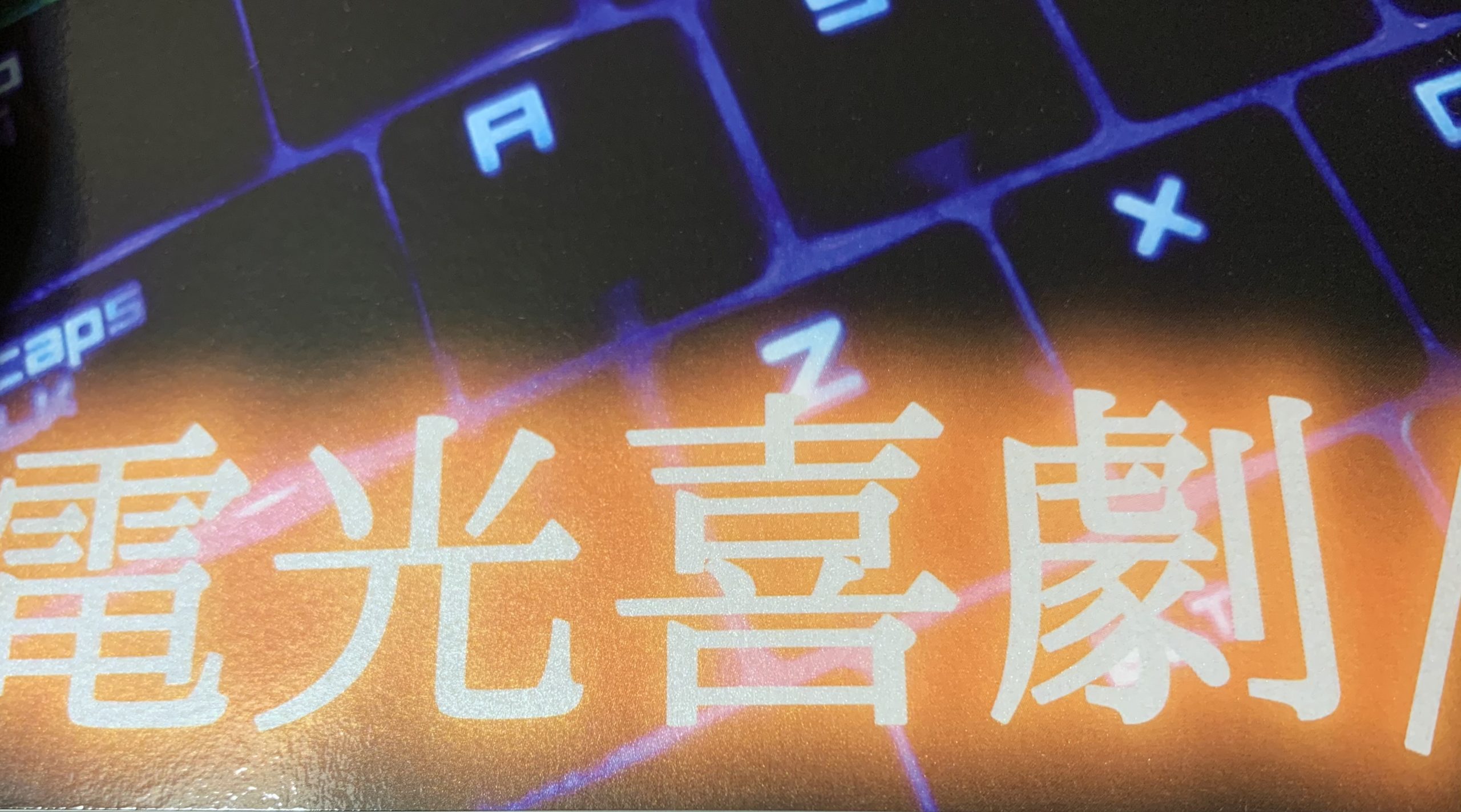 RGBを最大限に利用して、物理版の表紙で明るくした部分に、更に色を変える加工をしてみました。二人とも被っている「K」だけ紫色に。どうでもいいですけど、紫色ってエロいですよね。