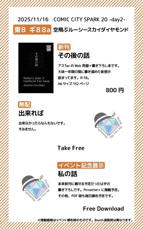 本以外でも何か賑やかしを持っていけるようにはするつもりですので、期待せずお待ちください。